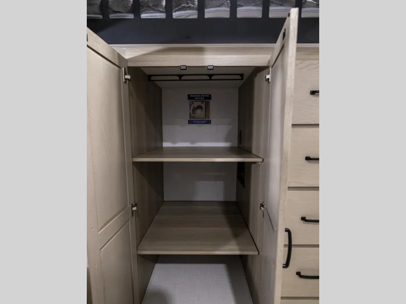 Sleeps 7 Slides 3 Tire Size 16" Furnace BTU 35000 btu Number Of Bunks 2 Available Beds King Refrigerator Type 12V Cooktop Burners 3 Number of Awnings 1 LP Tank Capacity 30 lbs Water Heater Capacity 12 gal Water Heater Type Quick Recovery Auto Ignition Gas/Electric TV Info LR Smart TV Awning Info 10' and 17' Power with Adjustable Rain Dump & LED Light Strip Axle Count 2 Washer/Dryer Available Yes Number of LP Tanks 2 Shower Type Shower w/Seat Electrical Service 50 amp Similar Floorplans