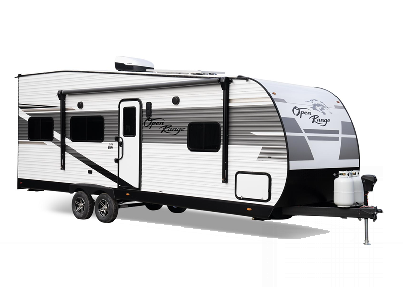 A convenient, durable, and cozy travel trailer or toy hauler travel trailer is waiting for you with the Open Range Conventional by Highland Ridge!