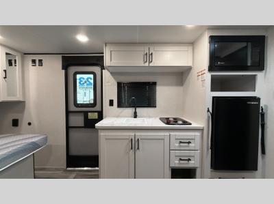 Each model is constructed with a Magnum Truss roof system, which is one of the strongest roofs in the industry, capable of withstanding 50% more weight. The axle(s) with electric, self-adjusting brakes and easy-lube hubs will make towing easier than ever, and the stabilizer jacks will give you peace of mind as you set up camp. Inside, you'll love the residential-style kitchen countertops and vinyl flooring throughout, plus there is an on-demand tankless water heater on board for hot water when you need it!
